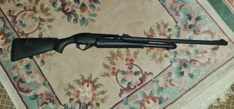 Sie bieten auf eine Vorderschaftsrepetierflinte der Marke Benelli, die ca 25 Schuss gemacht hat und einen gezogenen Lauf hat.