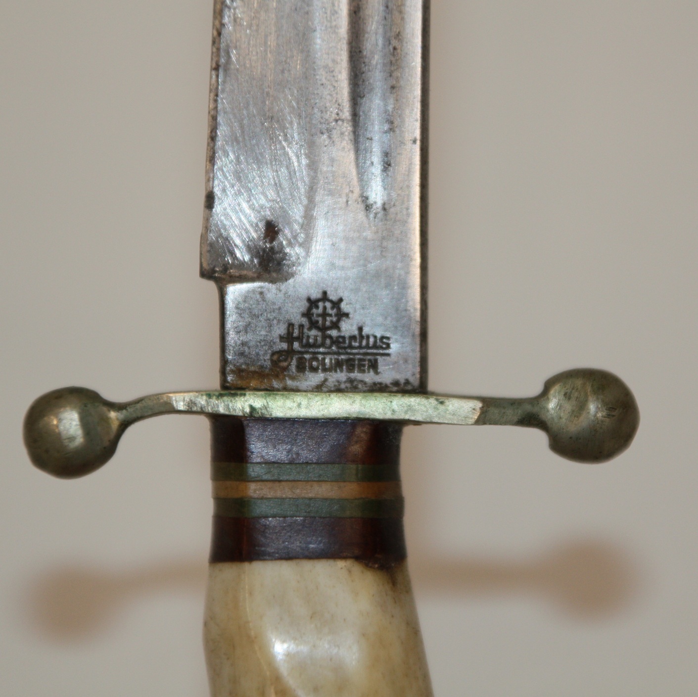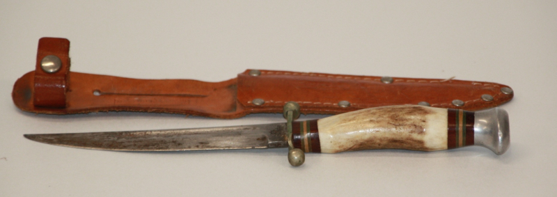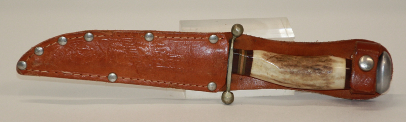 Komplett mit Lederscheide, gemarkt: HUBERTUS/MADE IN GERMANY.