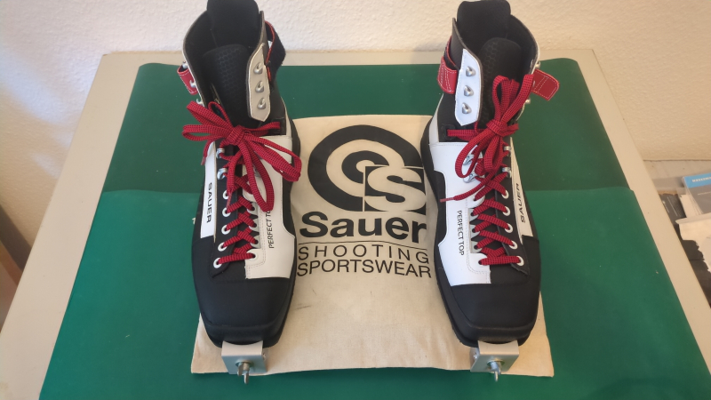Die hier zu erwerbenden SAUER Gewehrschießschuh PERFECT Top / Perfect X in Größe 45 inklusive Sauer Spanner sind die aktuelle Version und wurden gerade einmal 6 Trainingseinheiten und einen Wettkamp getragen.
