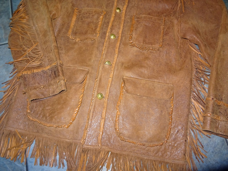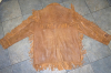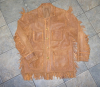 Verkauf wegen Sammlungsverkleinerung: ein authentisches Old Style Leather Jacket/Coat für Scouts, Buffalo Hunter u.a. - Größe ca. L bis XL (Maße: Schulterbreite von Schulternaht zu Schulternaht ca. 51 cm, einfache Breite über die Brust ca. 58 cm im geschlossenen Zustand, Gesamtlänge ca. 85 cm, Ärmellänge ab Schulternaht ca. 64,5 cm) - Wildleder (Bison?) - getragen mit Trage-/Gebrauchsspuren (Siehe Fotos!), schöner authentischer Used Look - US Import, Neupreis ca. 450 Euro