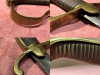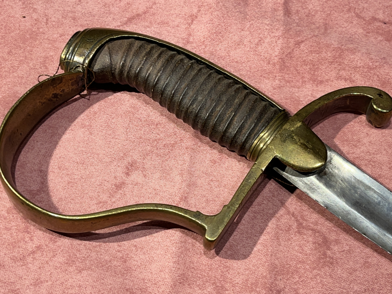 Reparaturstelle (Lot) zwischen Bügel und Griffknauf (Alter unbekannt), Griffleder in einwandfreiem Zustand.