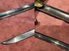 Die beidseitig gekehlte Klinge weist einige Scharten auf, ist aber absolut narbenfrei, kein Herstellerstempel sichtbar.