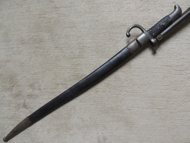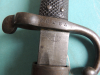 Das Bild zeigt das Bajonett aufgesteckt auf einer Büchse im Kaliber 11,7x51R mit Rollingblock-Verschluß.