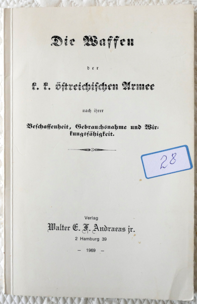 hier ein seltener "ANDREAS-HAMBURG NACHDRUCK 1969 " über alte österreichische GEWEHRE von 1846 !!, dabei genaue Anweisungen zu den MODELLEN M 1817 und den späteren KUGEL-VORDERLADERN,mit genauen LADEANWEISUNGEN der verschiedenen KUGELTYPEN und PÜLVERGEWICHTEN in den damals normalen MASSEN. ALLES hin bis zur CONSOLE-ZÜNDUNG und zur ANWEISUNG der notwendigen PAPIER-PATRONEN-HERSTELLUNG KUGEL-GIESSEN im FELDE ( SPIEL-und PASS-KUGELN,ROLLKUGELN) das alles im gemeinen TON,verständlich für den MUSKETIER im FELDE, die OFFIZIERE liessen sich das von ihren SOLDATEN erledigen !! ERSTMALIG hier alle genauen MUNITIONS-UNTERWEISUNGEN für BEHANDLUNG der GEWEHRE und deren PATRONEN bis 1846 (PATRONEN-PAPIER, SCHWARZPULVER und KUGELBLEI ) HIER findest DU alle, für uns PATRONEN-SAMMLER interessanten spezifizierten ANGABEN in der ABTEILUNG : "allgemeine EIGENSCHAFTEN der MUNIZION " ES folgt dann die BEMERKUNG zur WAFFENKENNTNISS des GEWEHRs und des KAVALLERIE-KARABINERs. ANSCHLIESSEND die TAFFELn der HANDWAFFEN :SÄBEL und BAJONETTE. HIER eine interessante BROSCHÜRE über österreichische WAFFEN und "MUNIZION" des 19ten JAHRHUNDERTs. DIESE BROSCHÜRE gibt ANTWORT auf viele FRAGEN !!!