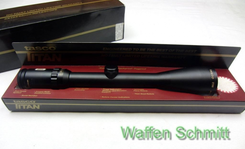 Sie bieten auf ein Zielfernrohr Tasco Titan 3-12x52, Abs.4. Mittelrohrdurchmesser 30mm, keine Kratzer auf dem gesamten Zielfernrohr, einwandfreie Funktion. Im Originalkarton. Sehr guter Zustand!!!