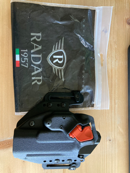 ich biete hier mein RADAR LTG Pro Holster mit Sicherung in Orange an. Das Holster ist OR kompatibel, allerdings muss die Standardvisierung (Kimme-Korn) verwendet werden. Bei der Verwendung einer höheren Visierung ist die Kompatibilität nicht gewährleistet.