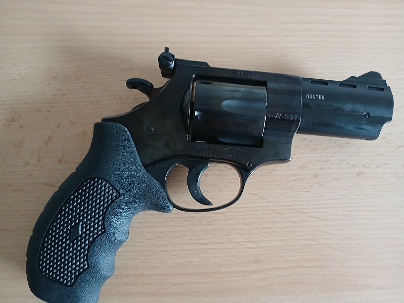 Revolver HW 357 Hunter, im Kaliber .357 Magnum, zu verkaufen, neu aus 2025, nur sechs Schuss auf der Schießanlage abgefeuert, einschl. Lederholster mit Gürtelclip.