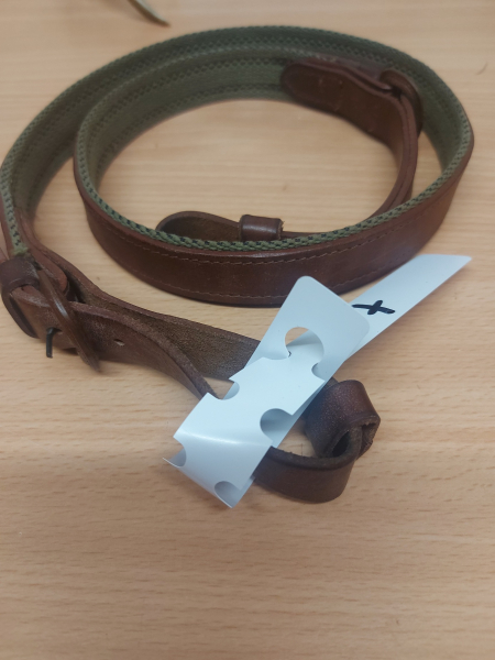 Trageriemen, Waffengurt, Tragegurt, Leder, innen mit hellgrünem Stoff gefüttert.