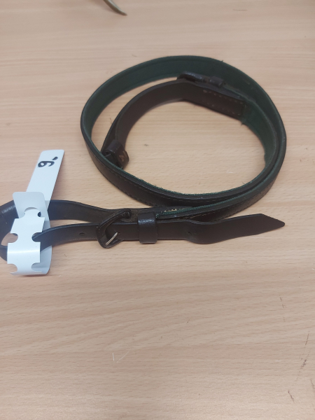 Trageriemen, Waffengurt, Tragegurt, Leder. innen grüner Stoff.