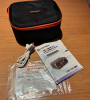 Ladung über USB/eingebauter Akku, Kabel ist dabei. Ebenso Transporttasche.