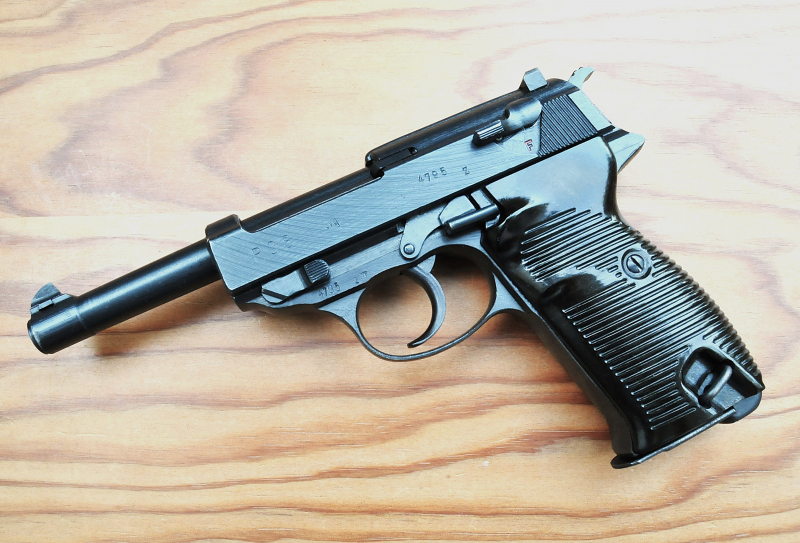 Sie besitzt sämtliche Merkmale der Spreewerk P.38 aus diesem Zeitabschnitt einschließlich des Dreizack-Hammers. Die Waffe ist an allen Teilen nummerngleich original (Griffstück, Verschluss, Lauf und Riegel). Lauf innen spiegelblank. Waffenamtsabnahmen und militärischer Beschuss regelrecht an allen dafür vorgesehenen Teilen. Kein Neubeschuss!!