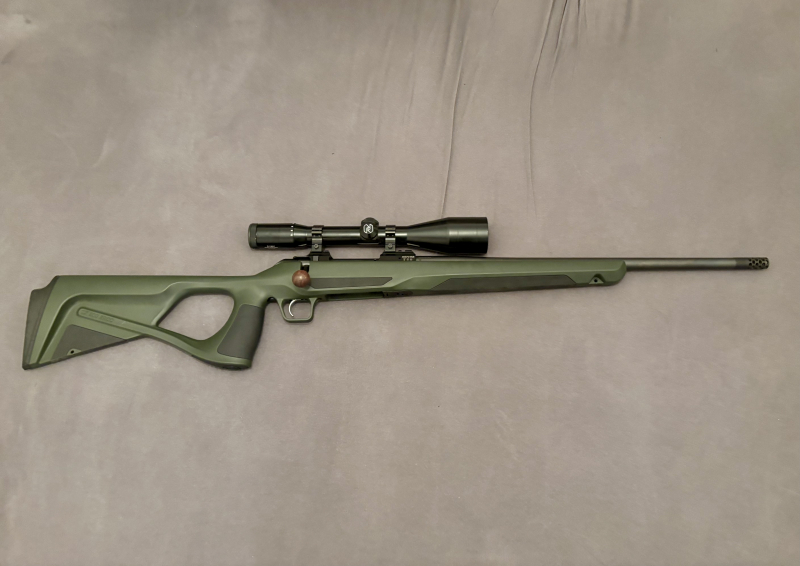 Waffe inklusive Magazin, Wallnuss-Kammergriffkugel (Modifikation meinerseits) und HexaBrake von Waffen Beyer - Montage und Glas sind nicht dabei (macht aber nichts, weil mit Absehen 1 will außer mir eh niemand jagen...). :-)