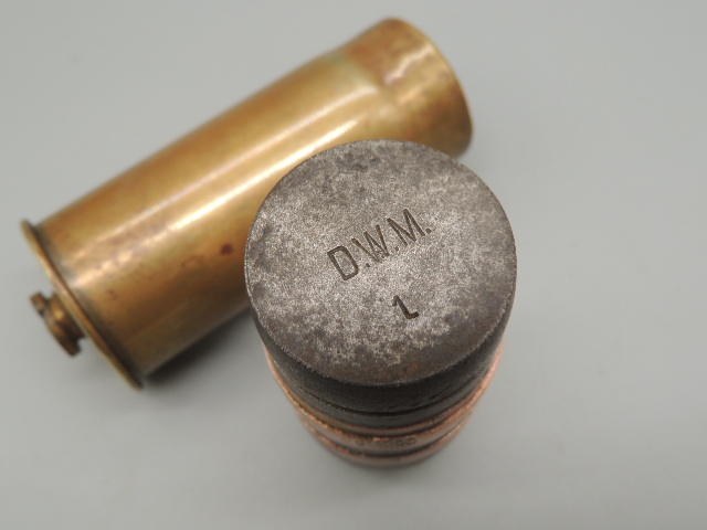 Spreng ÜB mit Hersteller DWM (Deutsche Waffen und Munitionsfabriken) Messinghülse der