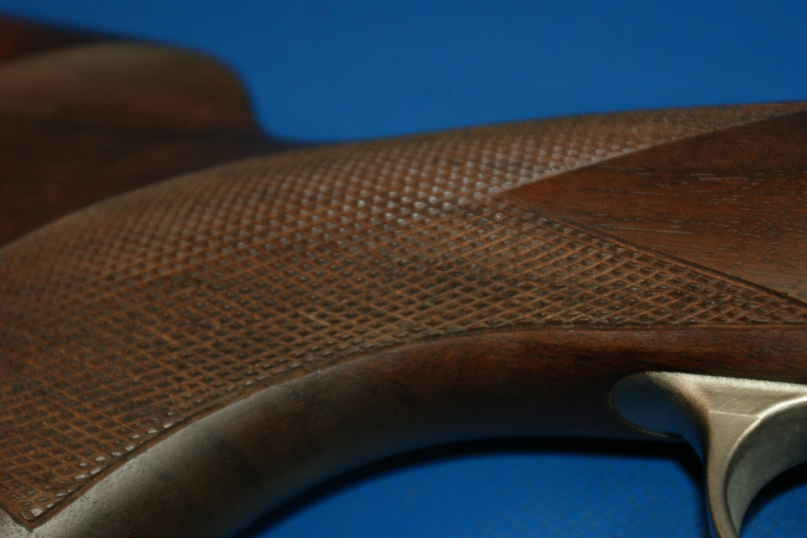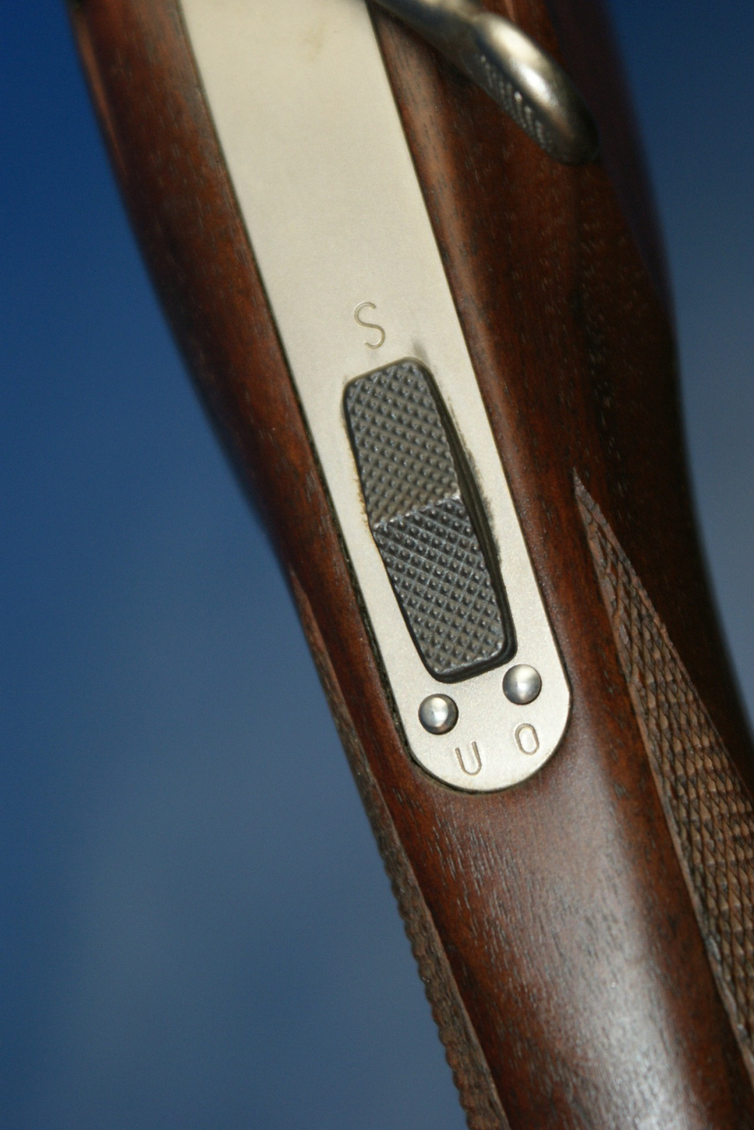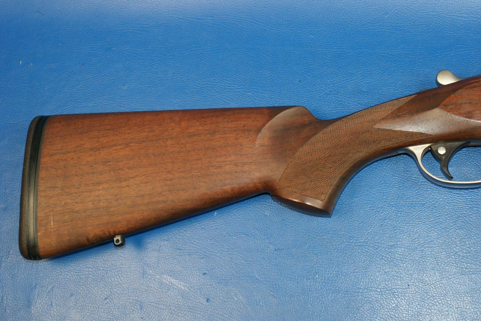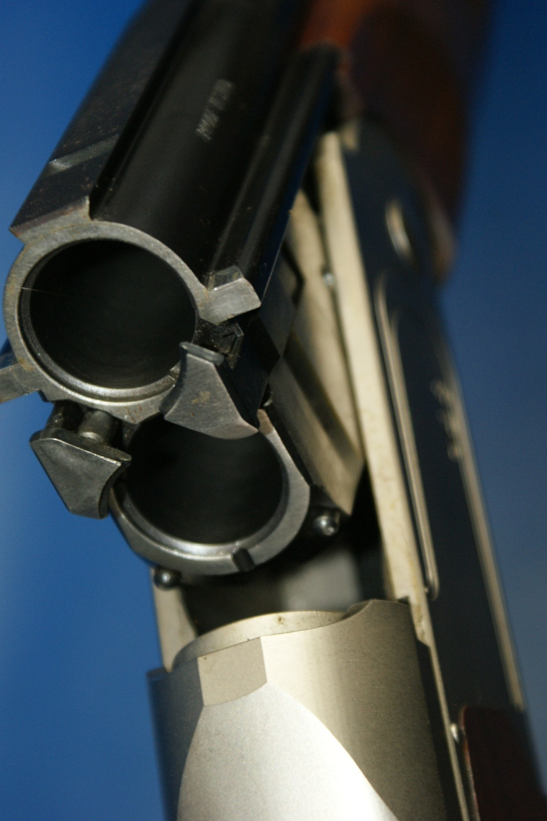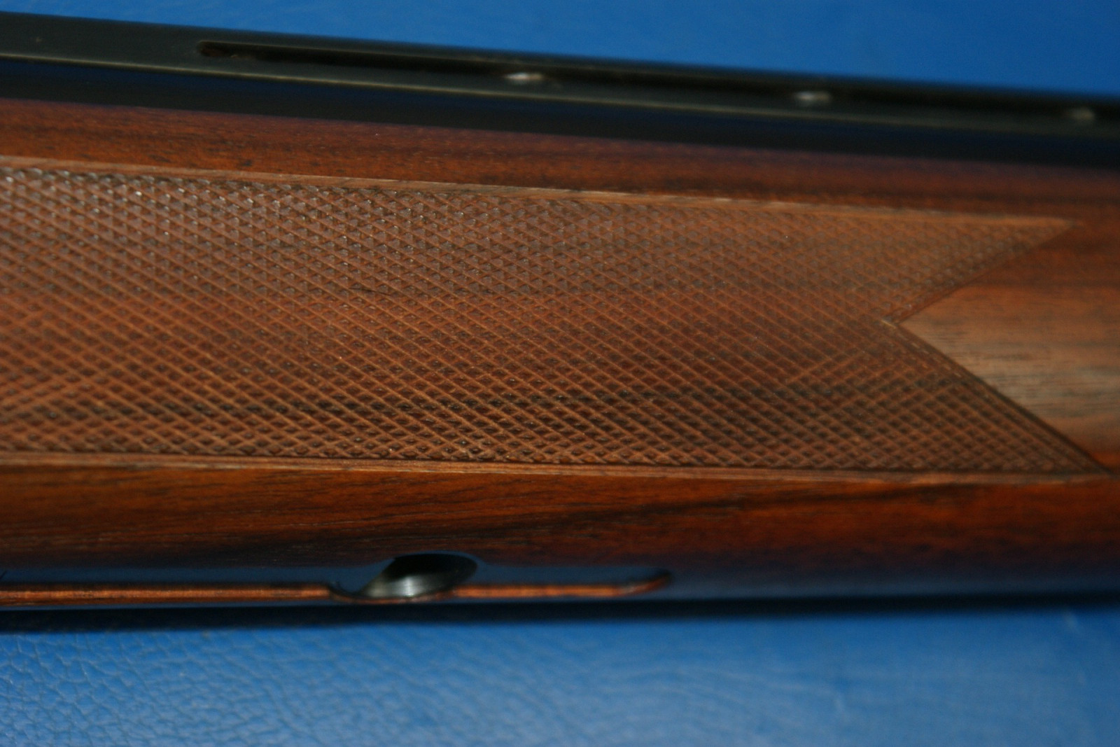Umschaltbarer Lauf (oben - unten), Ladestandsanzeiger, Fischhaut scharf . Lager-, Korrosions- und Gebrauchsspuren. Minimale Rostpünktchen ausssen am System. Waffe wurde selten benutzt (keine 500 Schuss) laut vorherigem Besitzer.