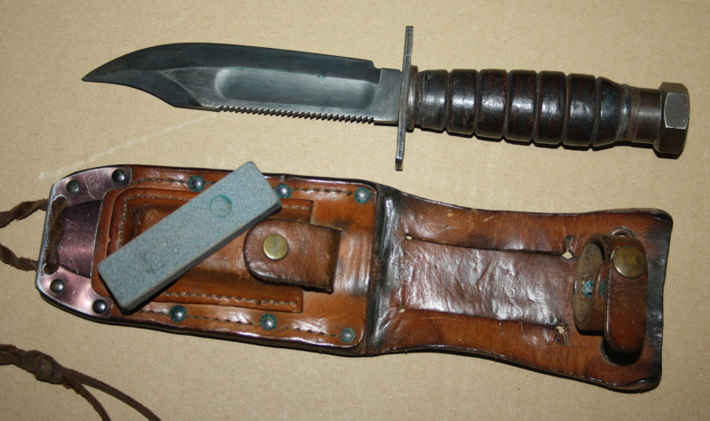 Sie bieten auf ein seltenes CAMILLUS US Piloten Überlebensmesser, komplett mit dazugehöriger Lederscheide und Feuerstein. Schöner Zustand!