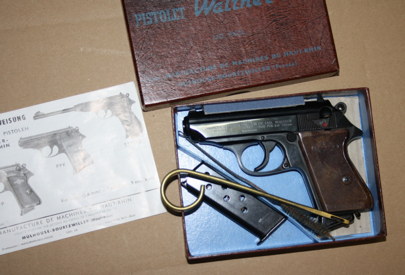Sie bieten auf eine nur leicht gebrauchte Walther/Manurhin PPK im Kal. 7,65mm Br. Die Pistole stammt aus einer Sammlung und kommt mit dem abgebildeten Zubehör. Alles TOP!