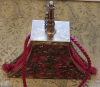 Zum Sofortkauf steht hier eine Kopie einer Pulverflasche aus Messing und Holz mit rotem Samtüberzug und historischen Motiven wie sie im 30ig jährigen Krieg verwendet worden ist. Sie gab es in verschiedenen Größen. Ich hatte diese Pulverflasche neben Vorderladern ausgestellt. Der Samt und der Korpus hat keine Beschädigungen oder Verschmutzungen. Nicht mehr oft so zu finden .