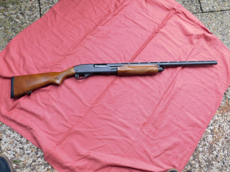 Gebrauchte Vorderschaftrepetierflinte Hersteller Remington 870 Magnum Kal. 12/76 und 12/70, Lauf innen blank, ausschraubarer Wechselchoke (weder weitere Chokes noch Schlüssel dabei) Gültiger Beschuss vorhanden, kein Stahlschrotbeschuss sichtbar. Für mich sind leichte Gebrauchsspuren sichtbar.