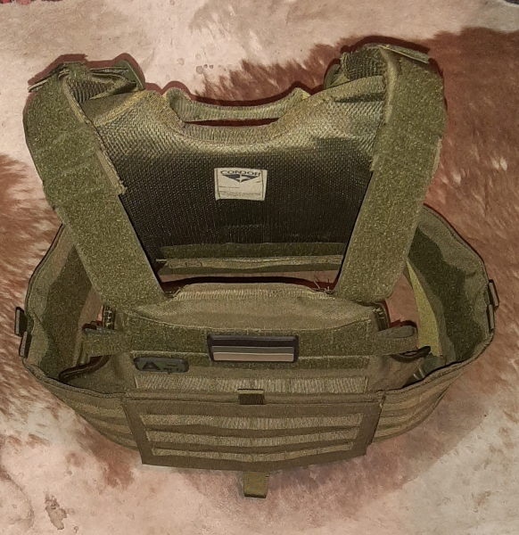 Taktische Weste oliv, Nylon, Molle Schlaufen, verstellbar, Berggriff hinten, mit Dummy Platten.