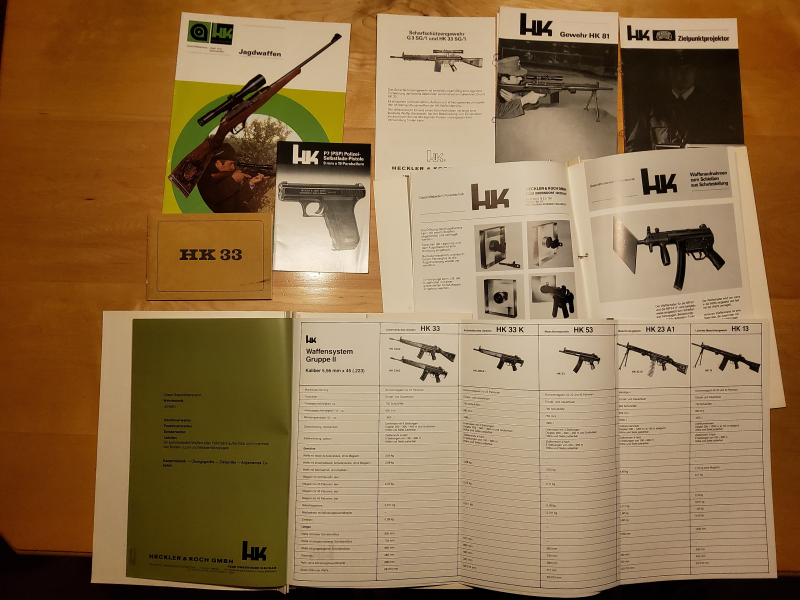Verkaufe hier mehrere alte Kataloge und Bedienungsanleitungen ( Behörden und Zivil) der Fa. Heckler & Koch. Privatverkauf keine Garantie und Rückgabe. Versandgebühren ins EU Ausland bitte erfragen. Bitte vor dem Bieten "My Gun" lesen. viel Spaß beim bieten.
