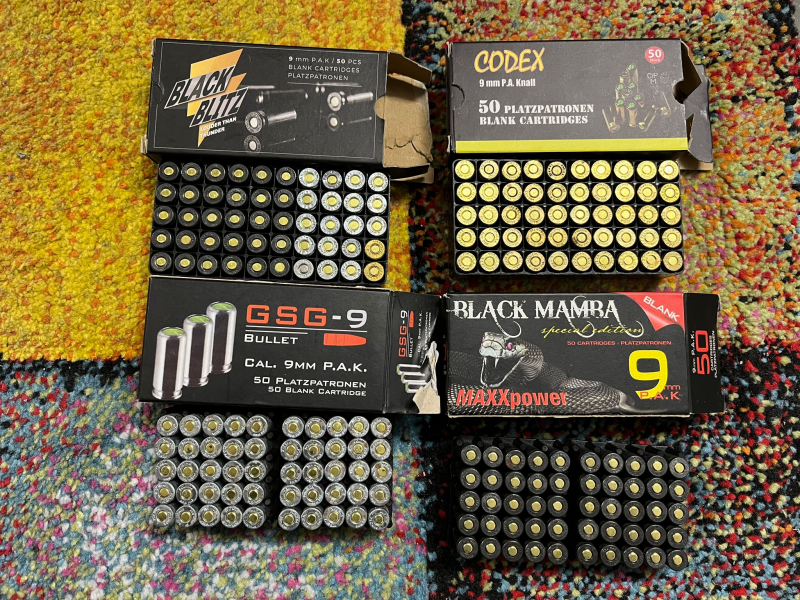 Zum Verkauf steht ein Konvolut (200 Stück) 9mm PAK Platzpatronen für Schreckschuss Waffen.