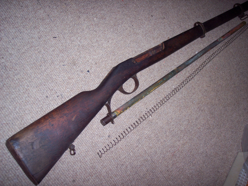 Bieten Sie bitte nicht wenn Sie nicht in 5 Tagen überweisen oder "MY EGUN" nicht lesen können oder wollen!!! Aus Nachlass, gebrauchter Schaft für Kropatschek-Gewehr M1886, mit Beschlägen und komplettem Magazinrohr, Magazinrohr ist einwandfrei, keine Beulen, Zubringer läuft gut, guter gebrauchsfähiger Zustand, siehe Bild!