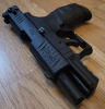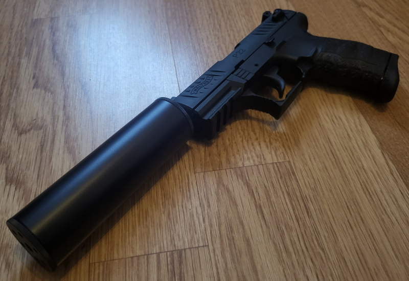 Verkauft wird eine Walther P22 im Kaliber 9mm P.A.K. mit einem Schalldämpfer, zweiten Magazin und dem originalen Walther Koffer. Macht schon ganz gut was her.