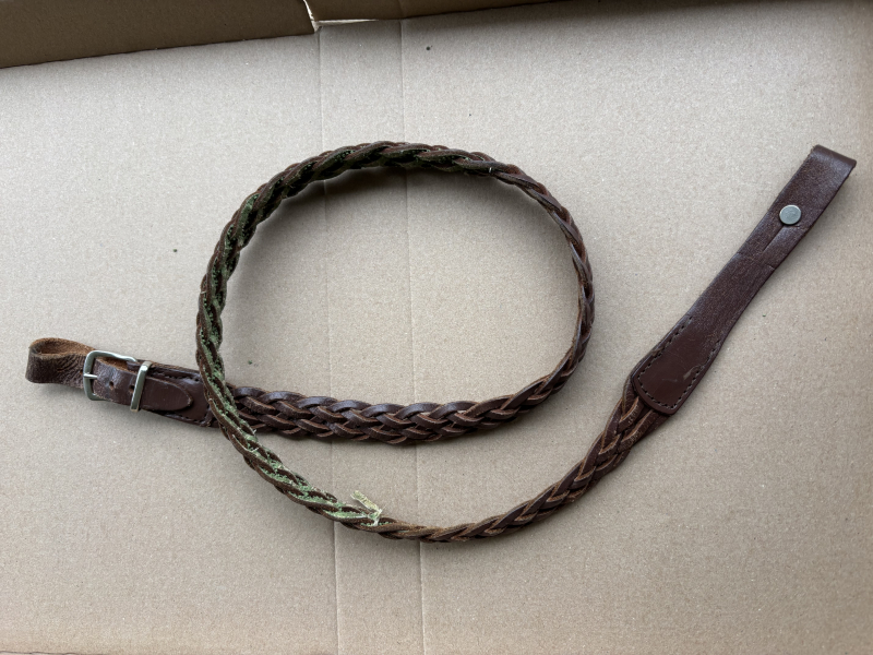 Gebrauchter Gewehrriemen aus Leder & geflochten, Länge 110cm. Zustand siehe Bilder. Versand als Warensendung.