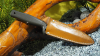 Die Scheide ist aus sehr stabilem dicken Sattelleder gefertig und hat einen Druckknopf mit "Thumb-Snap" so das diese einhändig geöffnet werden kann.