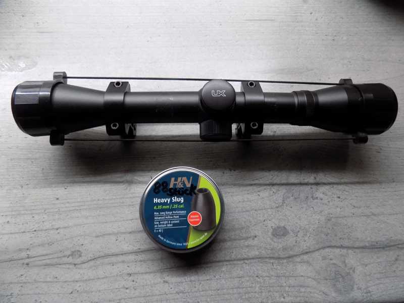 SONDERPREIS! Biete aus Nachlass ein neues UX (Umarex) Zielfernrohr 4 x 32 für Luft- und KK Gewehre + 88 Stück Cal. 6,35 mm (.25 ACP) Bleigeschosse 2,98 g. Zielfernrohr NP alleine 39,95 € !!!
