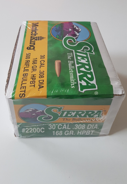 angeboten werden 500 Stück Sierra 30 cal. (.308 Dia) Matchking 168gr, HPBT, in OVP ungeöffneter Bulk, alles aus einem Los, Sierra # 2200C