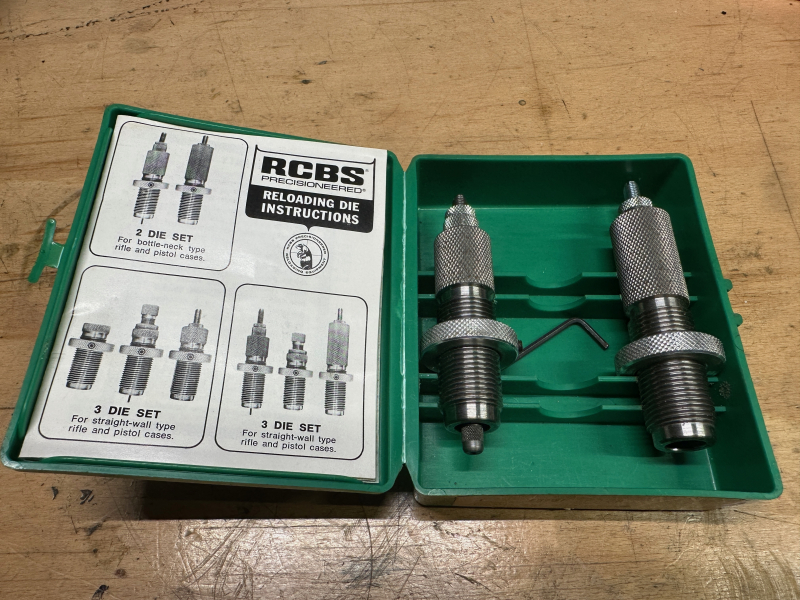 Der RCBS Matritzensatz in 8x57 Mauser ist Gebraucht. Bei der Kalibriermatrize fehlt der Ausstoßpinn für die Zündhütchen, der Halter vom Pinn ist dabei.