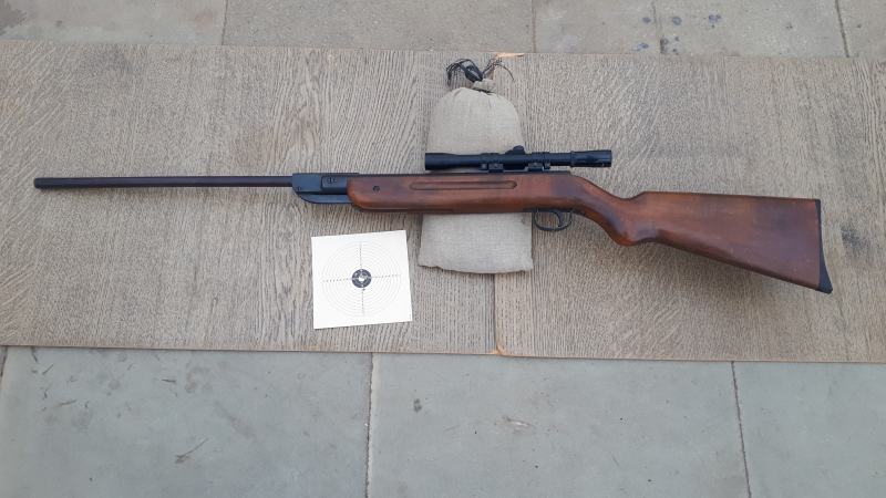 Altes Diana 35 Luftgewehr mit Umarex Zielfernrohr in 4 x 20 in Cal 4,5mm. Das Luftgewehr schießt, könnte aber mehr Druck haben. 120 m/s mit 0,53g Diabolos. Das Luftgewehr hat kein Herstellungsjahr oder Seriennummer. Laut Nachfrage bei bei Diana ist es in den 60 er Jahren gebaut worden.
