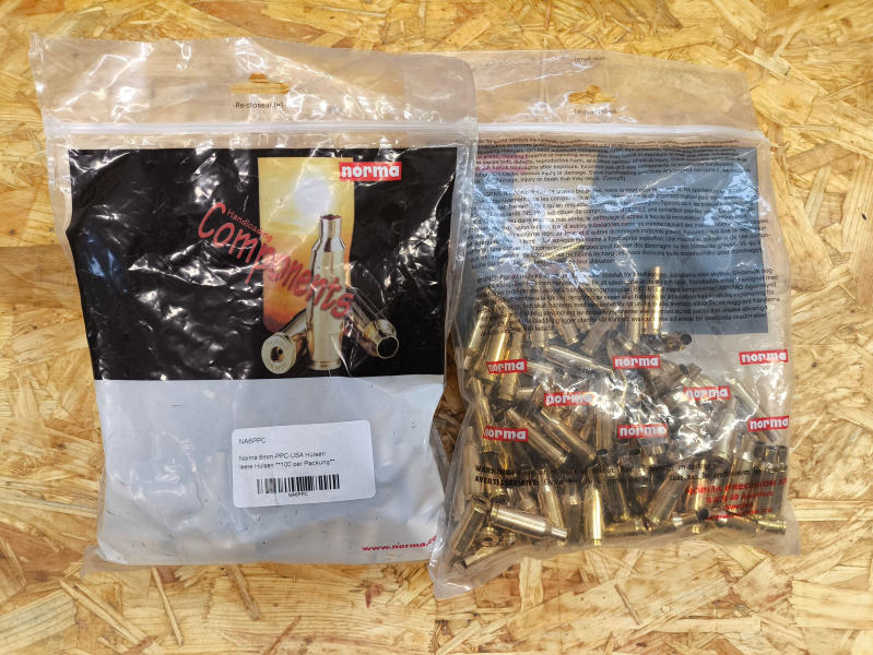 Zum Verkauf kommen jeweils 100 Neue Norma Hülsen 6mm PPC USA