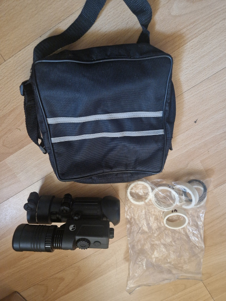 Hierbei handelt es sich um ein russisches Nachtsichtgerät der Marke Dipol D128 inkl. einen IR-Strahler von Pulsar (X850) für eine bessere Lichtausbeute. Der interne IR-Strahler wurde deaktiviert. Des Weiteren werden mehrere Adapterringe zur Montage auf das Zielfernrohr mitgeliefert. (siehe Bilder)