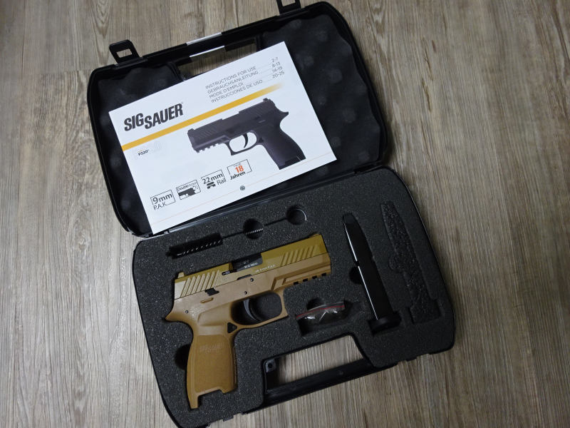 Lieferumfang: Waffe mit Magazin, Abschussbecher, Reinigungsbürste, Bedienungsanleitung und Kunststoffkoffer