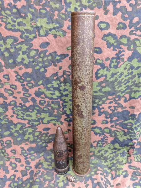 Hülsenbezeichnung: 7,5 cm PaK 40 (Messinghülse mit Bodenstempelung „75 cm PaK 40“ oder „6340 St“)