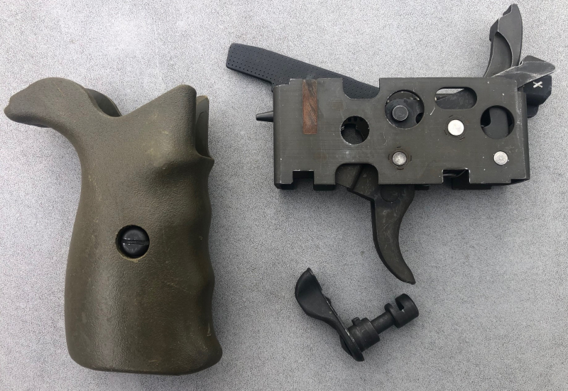 H&K HK G3 Abzugseinheit, komplett mit Griffschale, grün. Wie auf dem Foto!