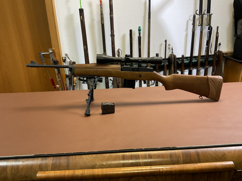 zum Verkauf steht eine sehr gut erhaltene Selbstladebüchse im Kaliber .223Rem -Gesamtlänge 94,5cm -Lauflänge 47cm -Länge Abuzug bis Schaftkappe 32cm -im Lieferumfang befinden sich ein 2Schuß unsd ein 10Schuß Magazin -Beschuss Adler N Mellrichstedt 1993 -Nikko Zielfernrohr 6x40 mit Absehen 1 Achtung EWB erforderlich! Die Bilder sind Teil der Beschreibung. Verkauf außerhalb von Deutschland nur nach vorheriger Absprache an zertifizierte Händler.