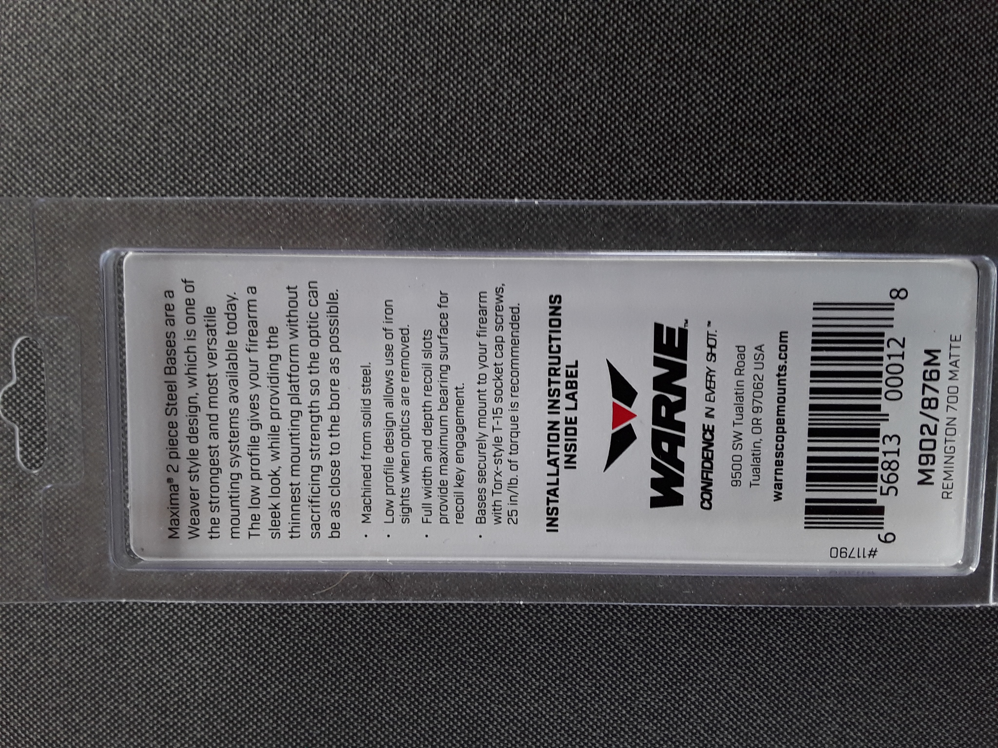 Verkaufe 2 teilige Montagebasen von Warne für Remington 700, Howa, Weatherby Vangard etc. Die Basen bestehen aus Stahl und haben das Weaverprofil. Neu in OVP. Habe mich für eine andere Lösung entschieden , daher wieder Verkauf. Dies ist ein Privatverkauf, daher keine Gewährleistung oder Rücknahme möglich!