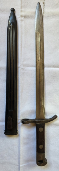 Finnisches Bajonett M27. Hersteller: Hackmann & Co. Wie auf dem Bild zu sehen ist, fehlt leider der Halteknopf. Das bedeutet, dass man das Bajonett zwar aufpflanzen aber nicht verriegeln kann. ---------------- Bei der Auktion handelt es sich um ein Originalstück aus einem Sammler-Nachlass den ich im Auftrag der Erben bei eGun einstelle. Deshalb werden nach und nach weitere Seitengewehre / Bajonette folgen. Das dazugehörige Gewehr ist aufgrund der Vorgaben des Waffengesetzes direkt an einen Waffenhändler gegangen. --- Zusätzliche Fotos können auf Anfrage gemacht werden (bitte ein paar Tage Zeit dafür einplanen, da sich die Auktionsgegenstände nicht bei mir vor Ort befinden). --- Genannte Versandkosten gelten nur innerhalb der BRD. Abholung nach Terminabsprache möglich. Weitere Informationen finden Sie in myGun oder unter den „Allgemeinen Informationen des Verkäufers“. --------------------------- ACHTUNG: BEI DEN HIER ANGEBOTENEN BLANKWAFFEN HANDELT ES SICH UM BLANKWAFFEN MIT WAFFENRECHTLICHER RELEVANZ NACH § 1 Abs. 2 Nr. 2a WaffG i. V. m. Anlage 1! Das bedeutet, dass die hier angebotene Blankwaffe in Deutschland erst ab einem Alter von 18 Jahren verkauft werden darf. Somit ist ein Altersnachweis bei einer Empfangsadresse in Deutschland ZWINGEND notwendig! Die gilt nicht für zertifizierte (ID) eGun-Mitglieder. Wer trotzdem versucht in Deutschland ohne Altersnachweis an diese Waffe zu kommen (typische Aussage: „…habe ich noch nie gebraucht…“) macht sich strafbar!