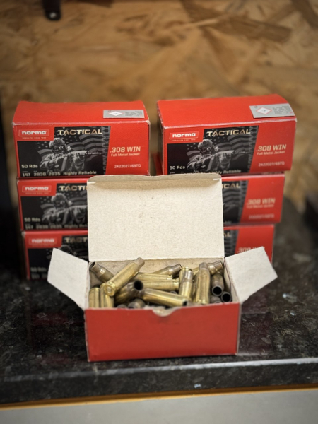 Verkauft werden 350 Norma Hülsen, Kaliber .308 Win. Alle aus einem Los und einmal abgeschossen.