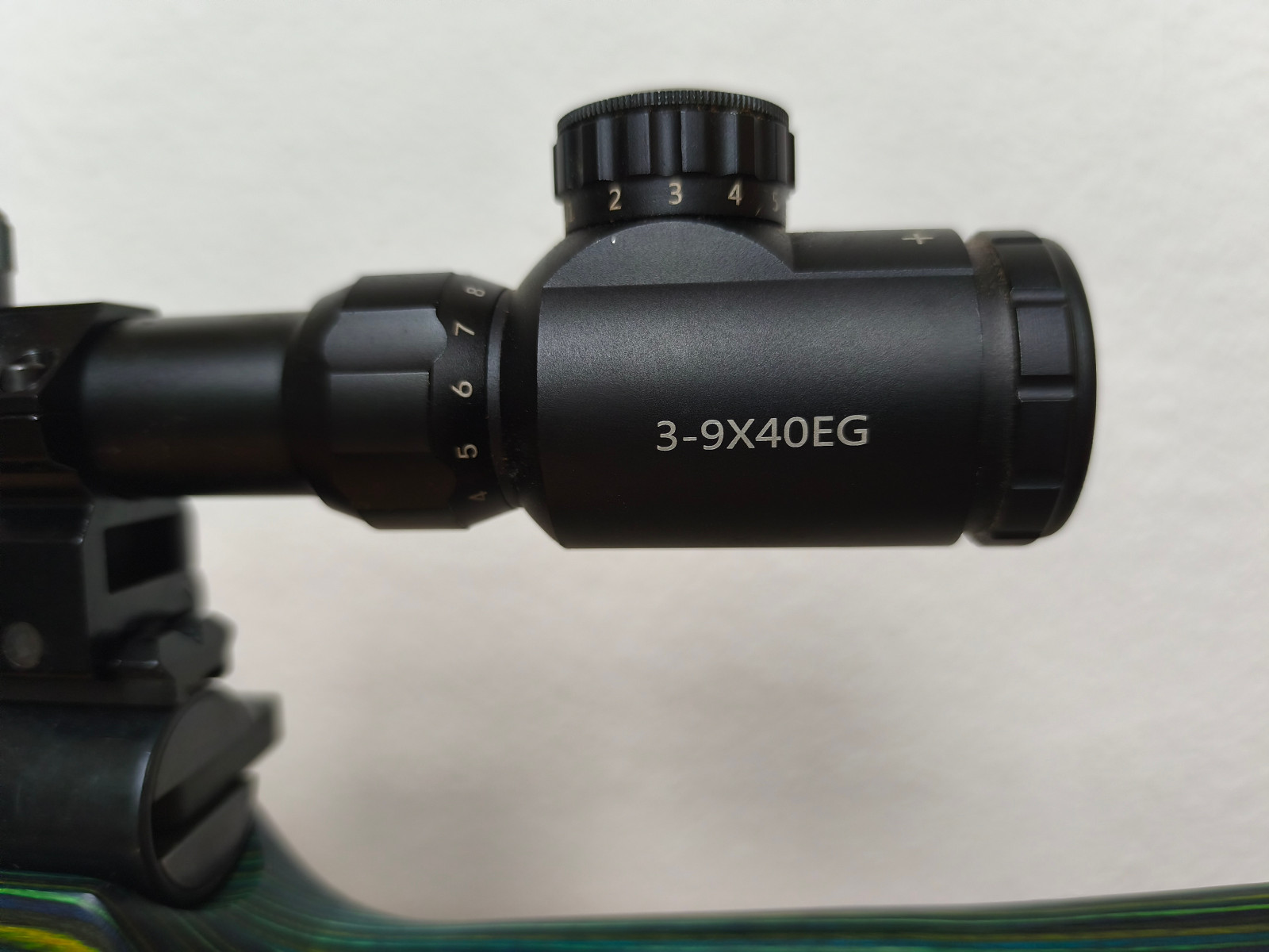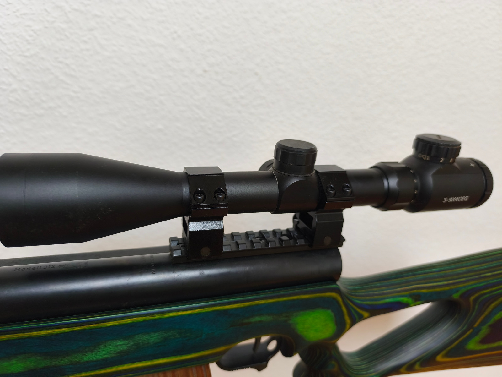 Statt der Dioptervisierung ist ein Zielfernrohr mit Rot/ Grün Beleuchtung verbaut.Die Zieloptik ist auf einer Weaverschiene aufgesetzt.