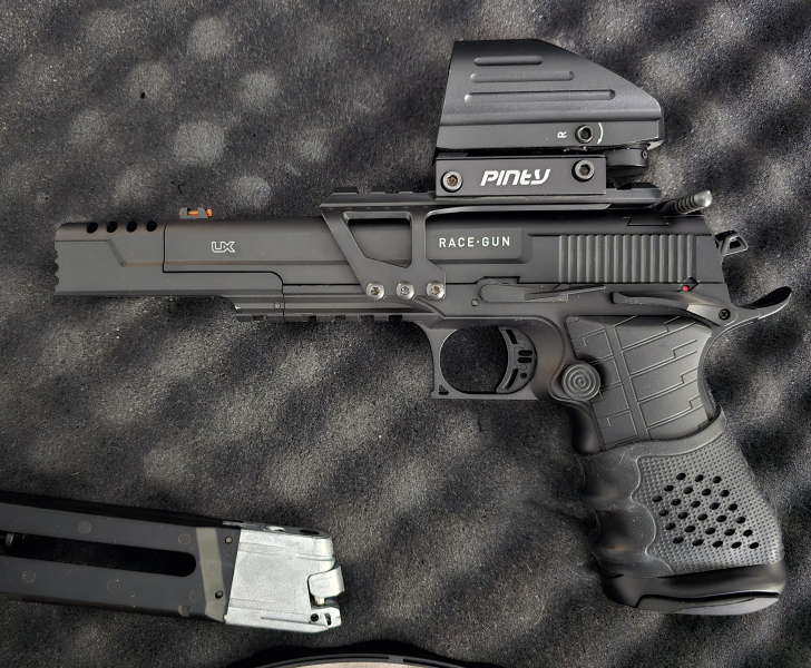 Hallo, biete hier von Umarex die Race Gun CO2, Schwarz, in 4,5mm BB. Die waffe ist im sehr guten gebrauchten Zustand, keine gebrauchspuren, wurde wenig geschossen. Waffe ist aus metall. Mit dabei Red Dot plus montage, 2. Magazin und Waffenkoffer.