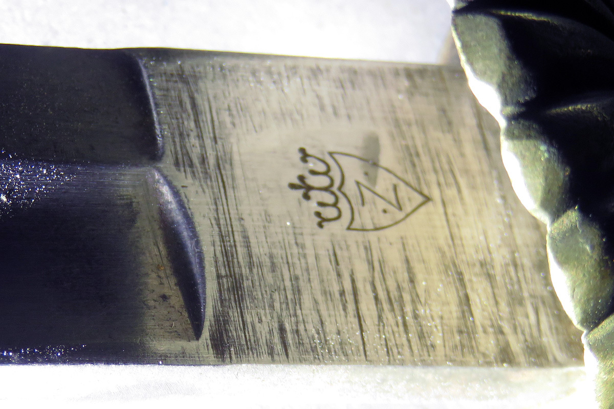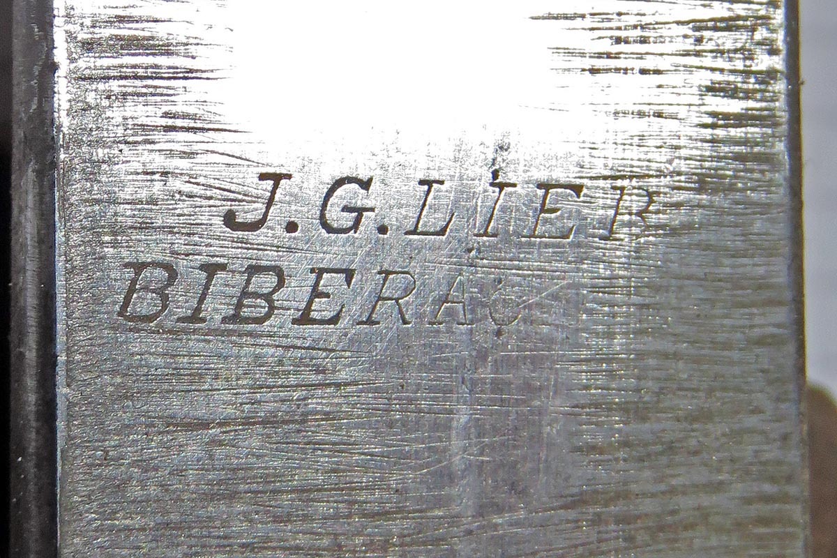 Klinge mit beidseitiger Hohlkehle und Wappen unterm Stichblatt, Herstellerbezeichnung "J.G.LIEB BIBERACH"