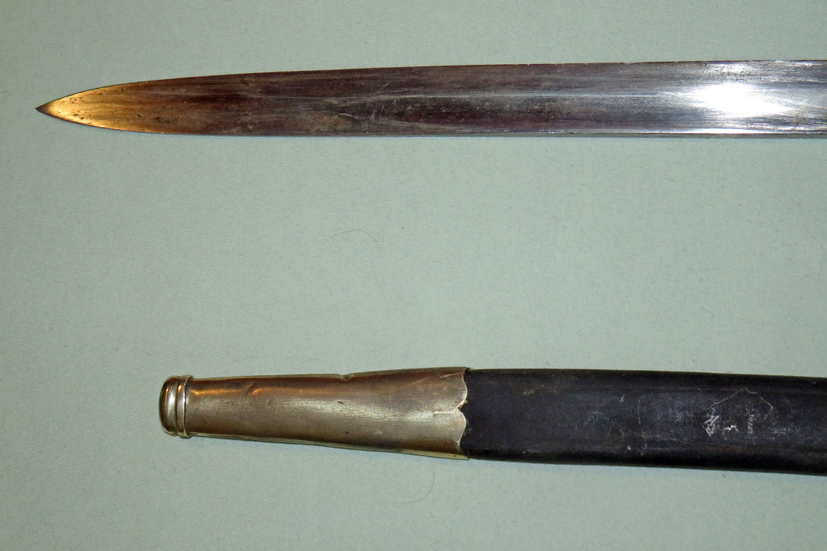 Mit Gebrauchsspuren, Beschläge der Scheide etwas eingebeult.