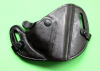 Sehr aufwändig und qualitativ hochwertig verarbeitetes schwarzes Lederholster.