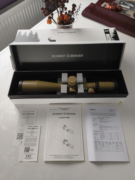 • Service: Werksservice durch Schmidt & Bender im 09/2025 – Justierung + Funktionsprüfung (Servicenachweis liegt bei)