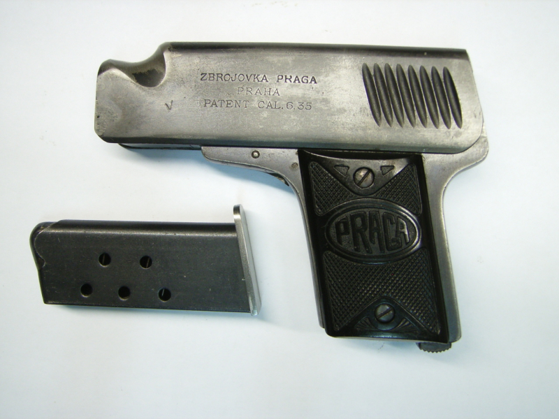 Sie bieten hier auf eine gut erhaltene Pistole Prage Mod. 1921 im Kal. 6,35 mm. Die Pistole ist nummerngleich mit blankem Lauf. 6schüssig, Beschuß 1921, mit Klappabzug. Konstruktion V. Holek. Links am Verschluss dreizeilig "Zbrojovka Praga / Praha / Patent Cal. 6,35". Originale Brünierung mit Trage- und Gebrauchsspuren. Magazinboden ersetzt. Die Abzugsschiene wurde durch zwei vierkantstifte ersetzt, Funktion einwandfrei. Privatverkauf, kein Rückgaberecht und Gewährleistung. Der Bieter erklärt sich durch sein Gebot mit diesen Bedingungen einverstanden.