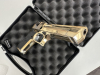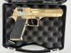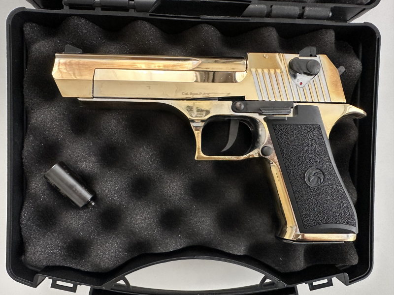 Die Waffe ist von mir zum Erscheinungsdatum neu erworben worden und es ist nur ein Magazin testweise abgefeuert worden.Anschließend befand sich die Waffe in einer Vitrine. Ich habe die Waffe einem Bekannten überlassen, der eine Hobby-Galvanikanlage erworben hat, um die Waffe testweise zu vergolden. Das Ergebnis ist leider etwas laienhaft, da es die erste Vergoldung mit dieser Anlage war. Die Goldschicht ist leicht ungleichmäßig, nicht vollständig deckend und leicht zerkratzt (siehe Bilder). Vergoldet wurde mit einem 24 Karat Elektrolyt. Ich fand es dennoch schön, da es einen "Used-Look" nahe kommt und habe die Waffe weiterhin in der Vitrine aufbewahrt. Vor dem vergolden wurden die Schriftzüge "Retay Big Fifty" und "Türk Mali" wegpoliert, alle wichtigen und rechtlich relevanten Schriftzüge sind vorhanden. Leider hat sich im Laufgewinde der Waffe, sowie am Abschussbecher etwas Flugrost angesammelt. Mit dabei ist noch der originale Waffenkoffer und der Abschussbecher. Die Waffe befindet sich akteull im gereinigten und frisch geöltem Zustand. Da es sich um eine Privatauktion handelt, erfolgt diese ohne Anspruch auf Gewährleistung, Sachmangelhaftung, Garantie, Rückgaberecht, Umtausch, Nachverhandlungen, sowie Haftung für Sach- und Personenschäden.
